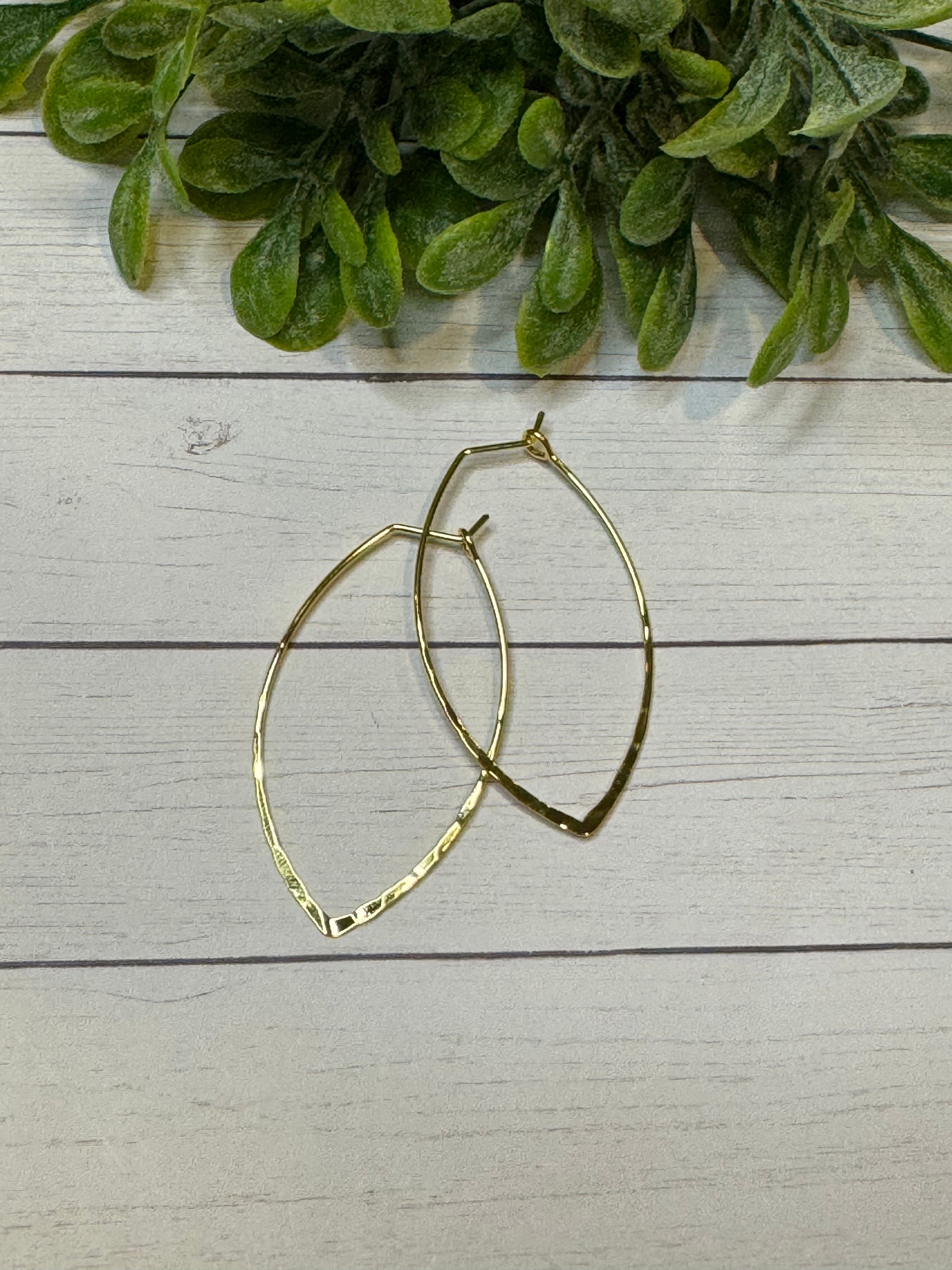 Gold Hammered Oval Hoops