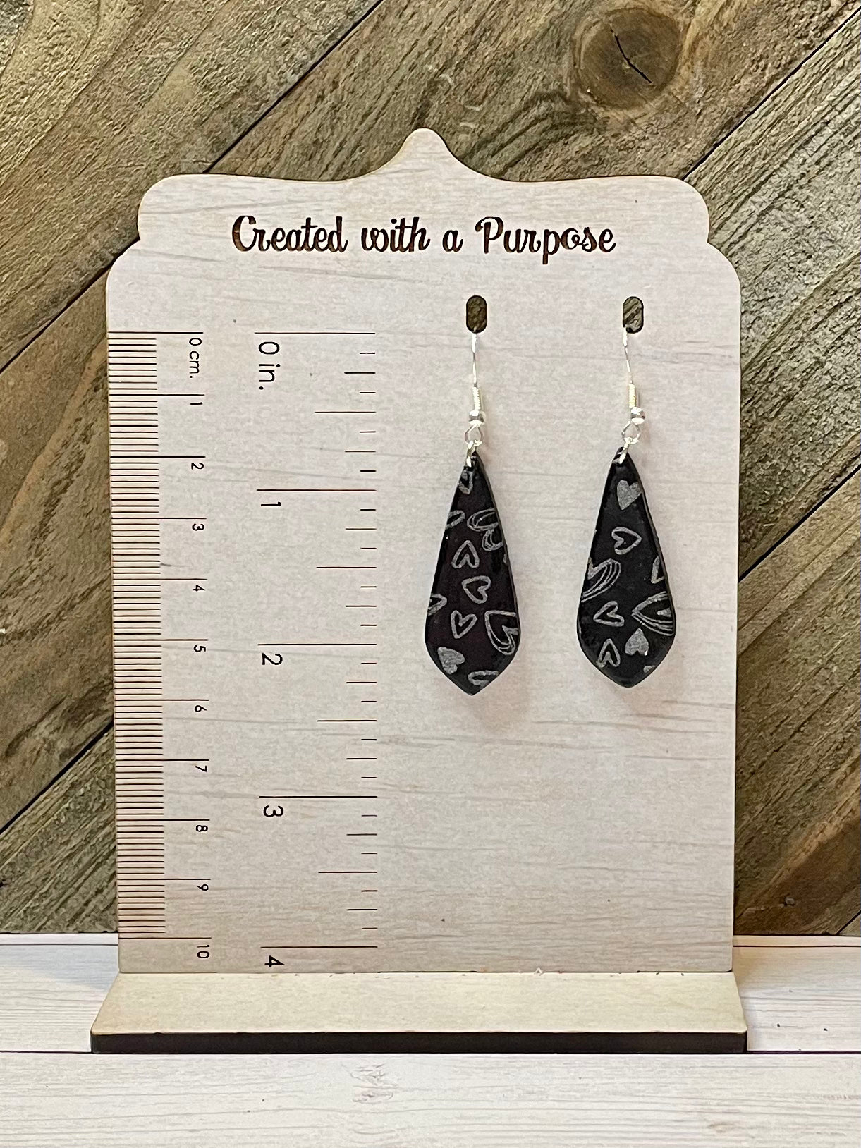 Holographic Silver Hearts on Black Earrings