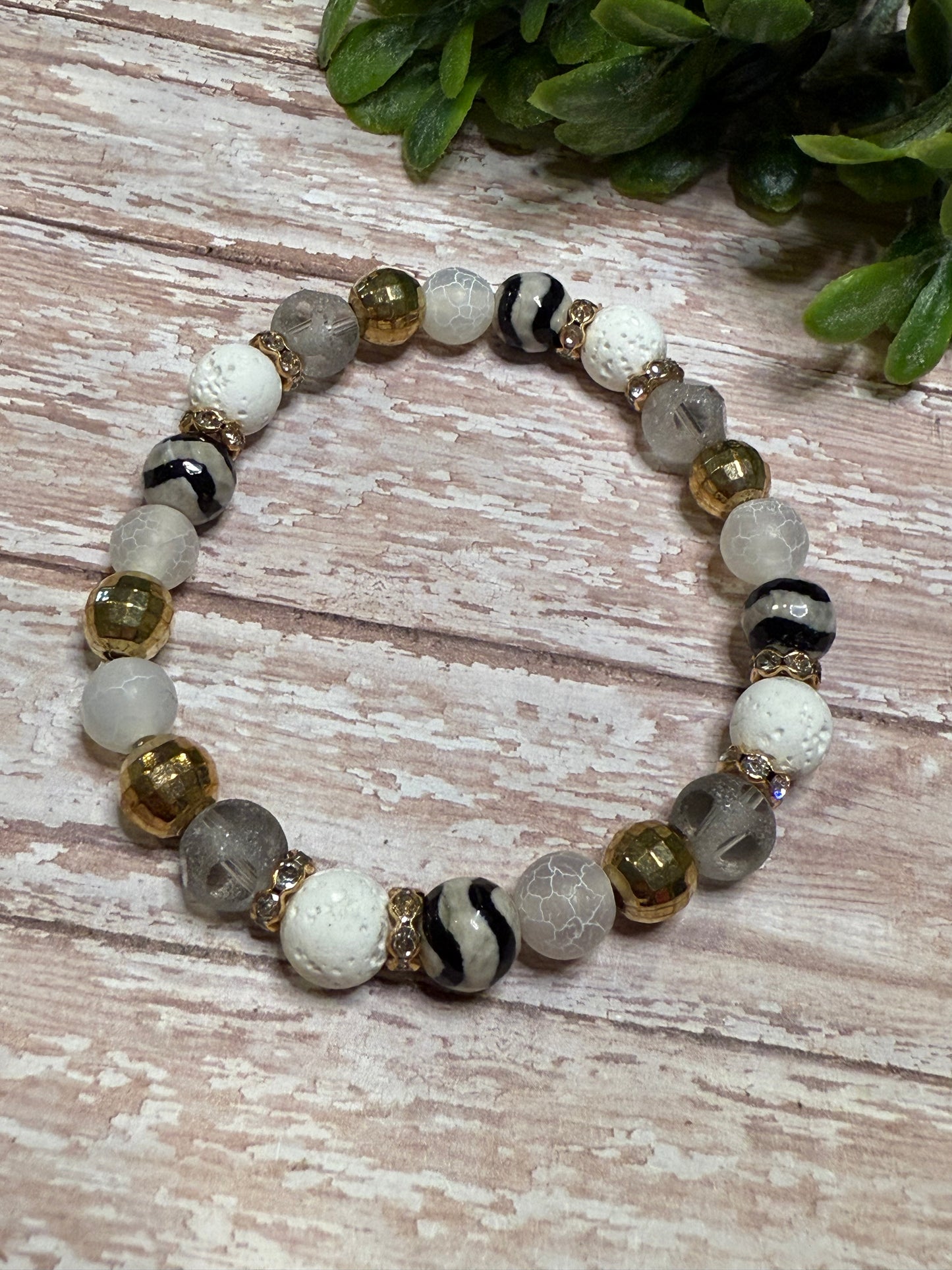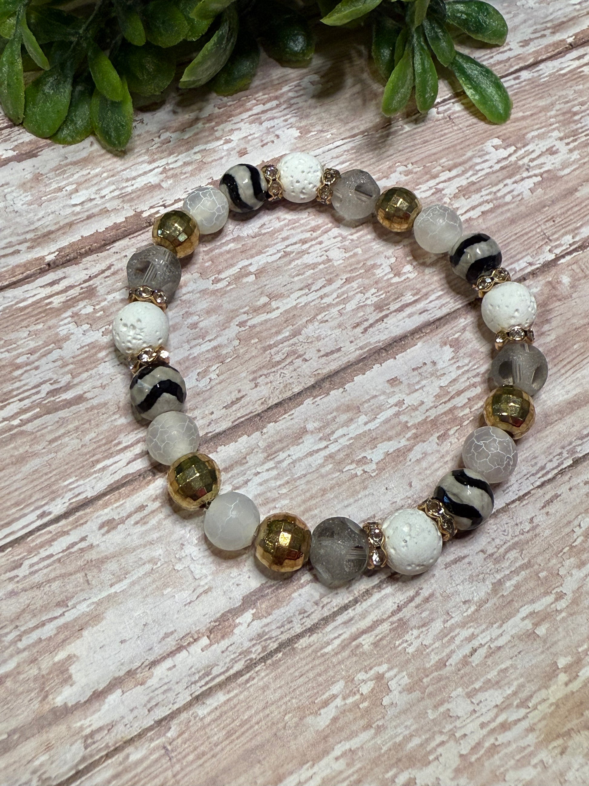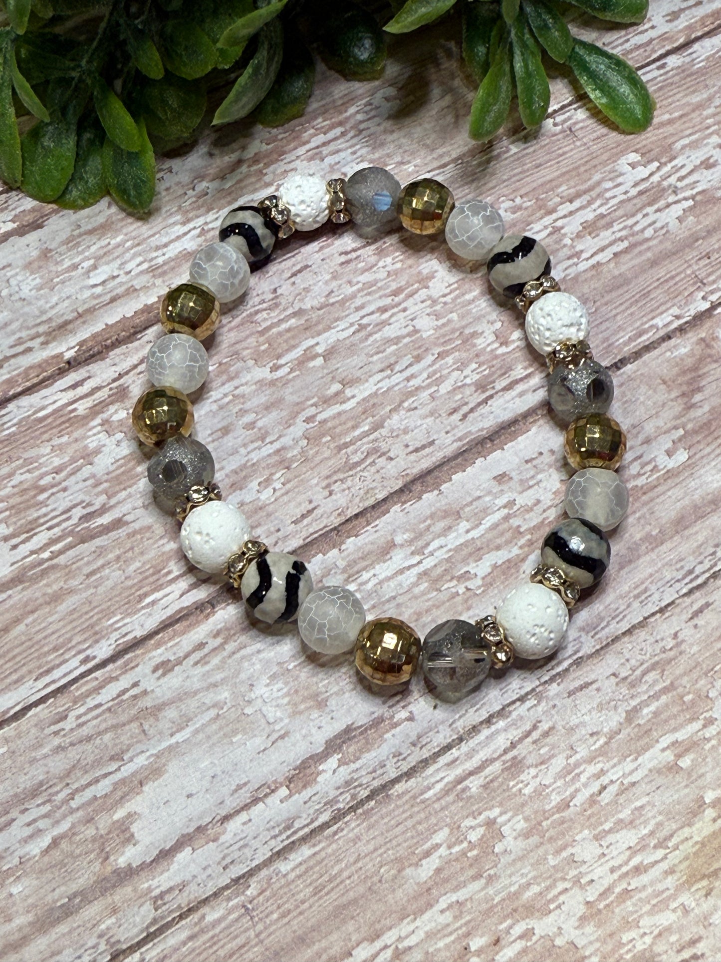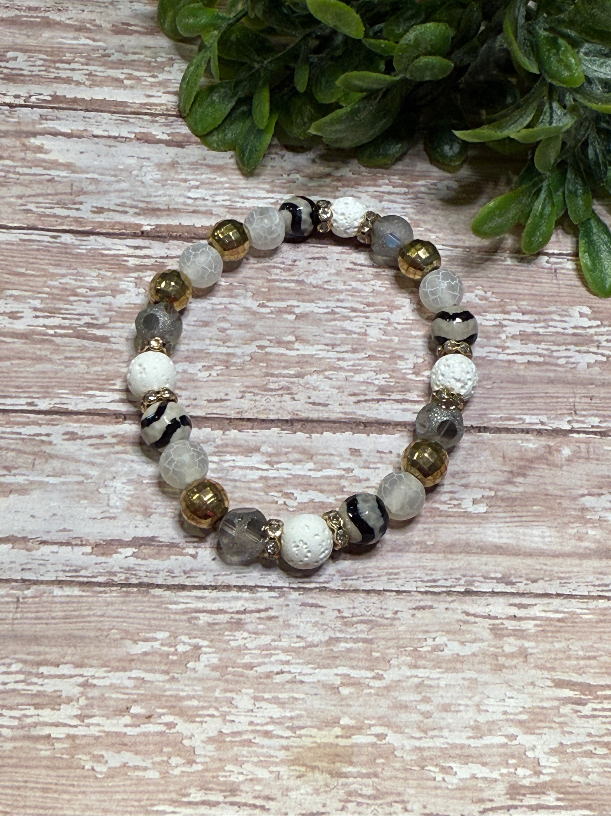 Stretchy Bracelet with elastic string - Always roll your bracelet over your hand to take it on and off.
