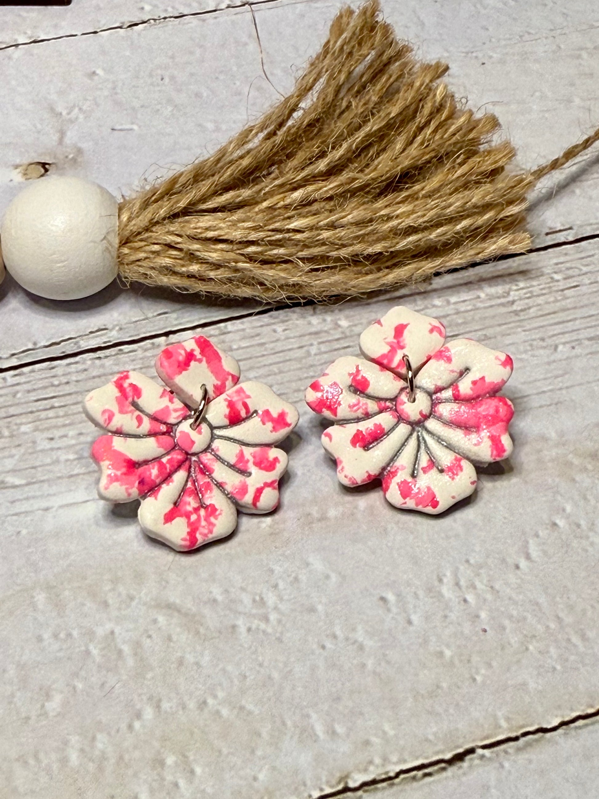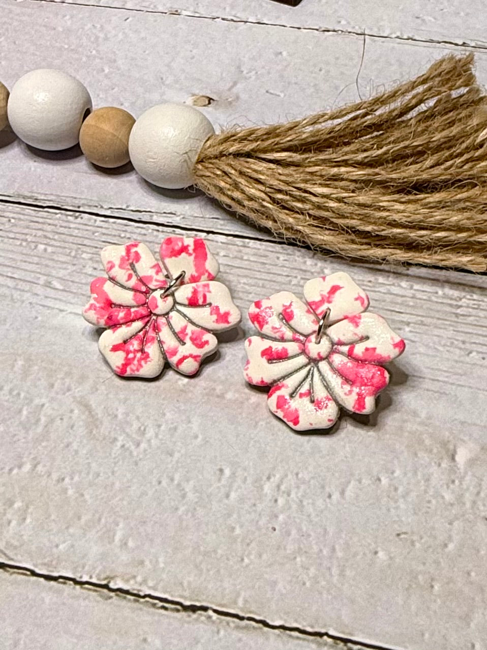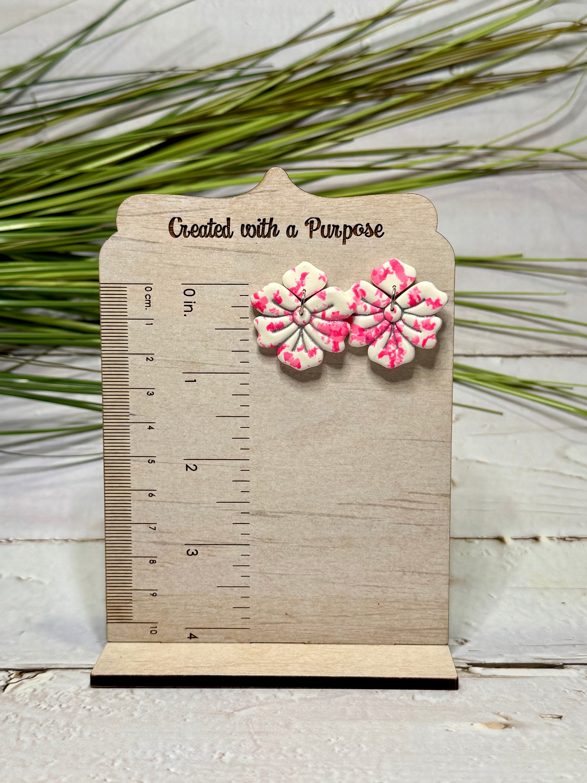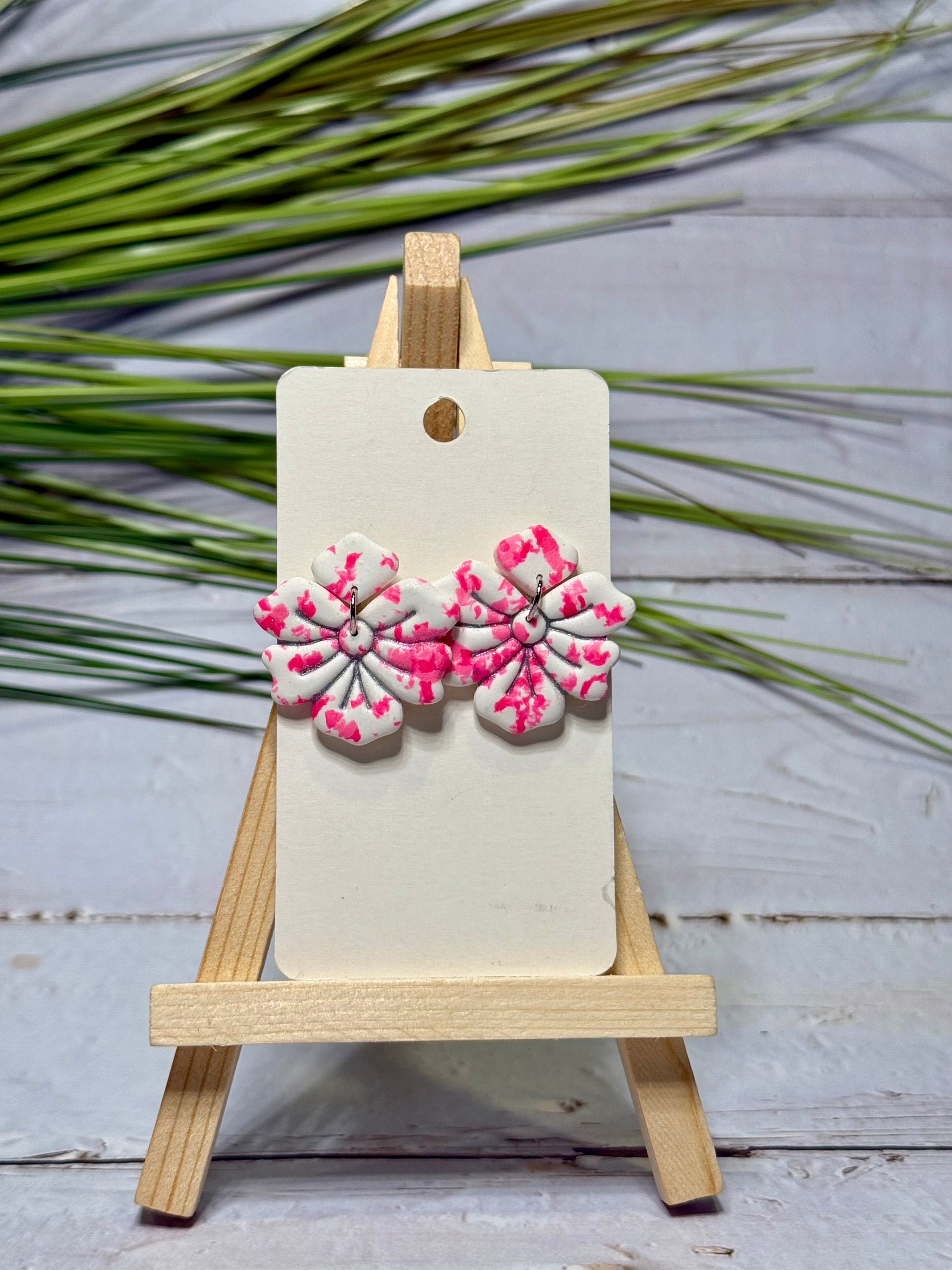 Pink and White Flower Earrings