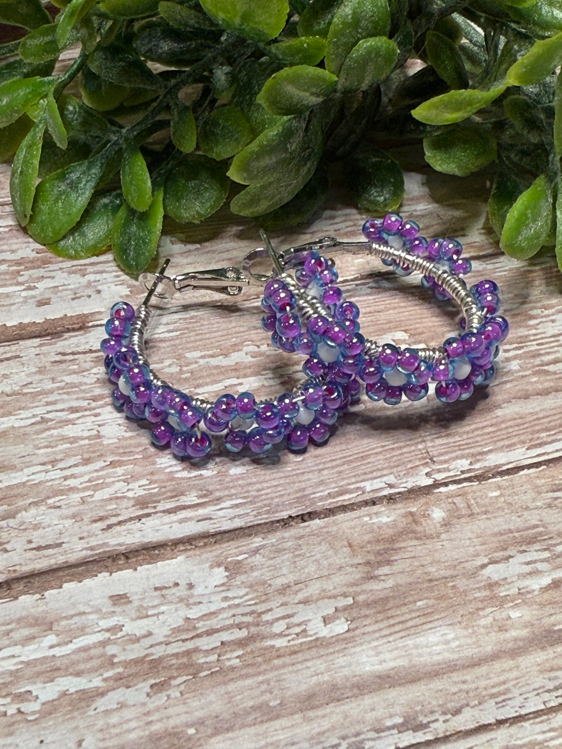 Purple and White Flower Hoops