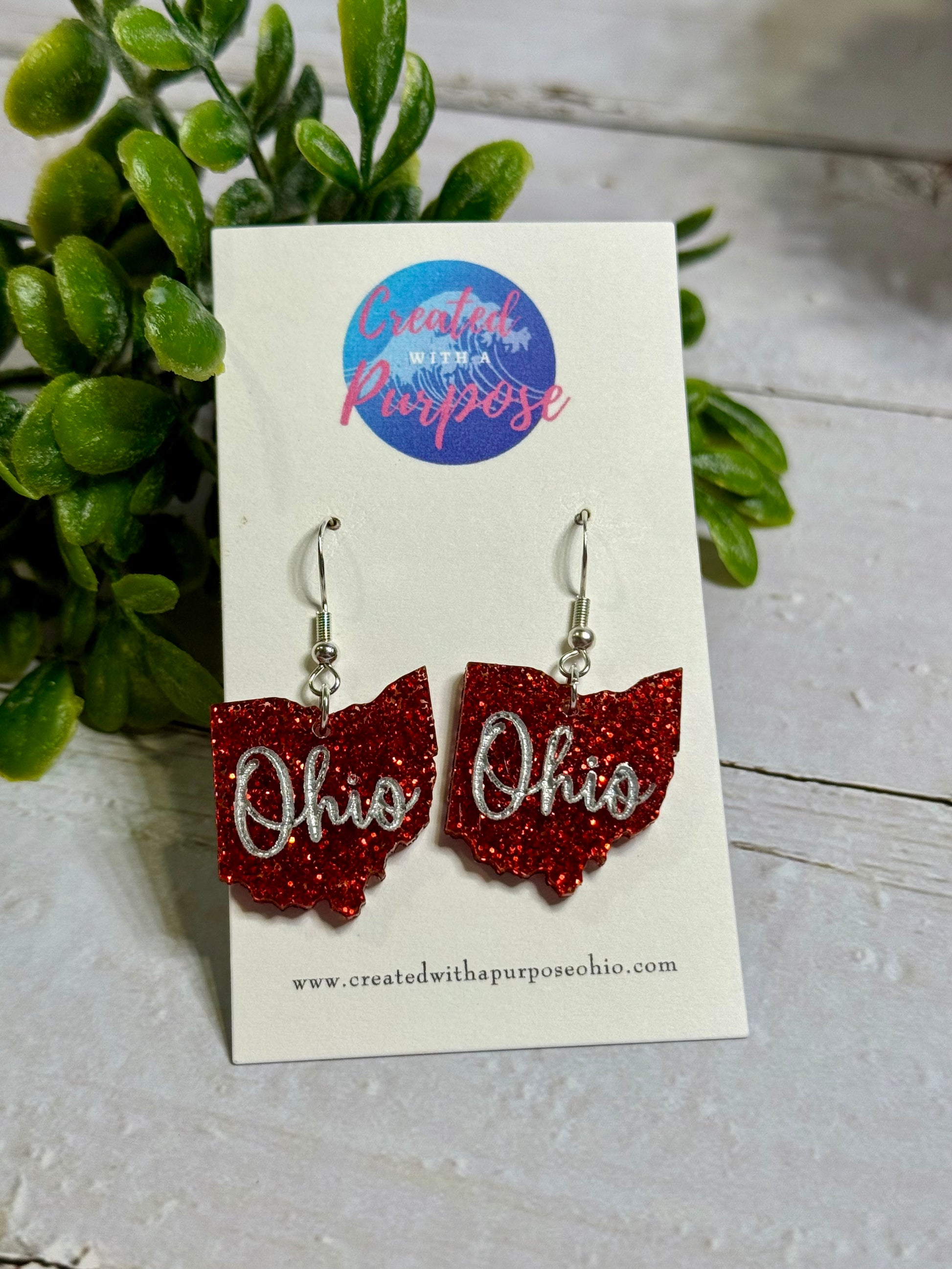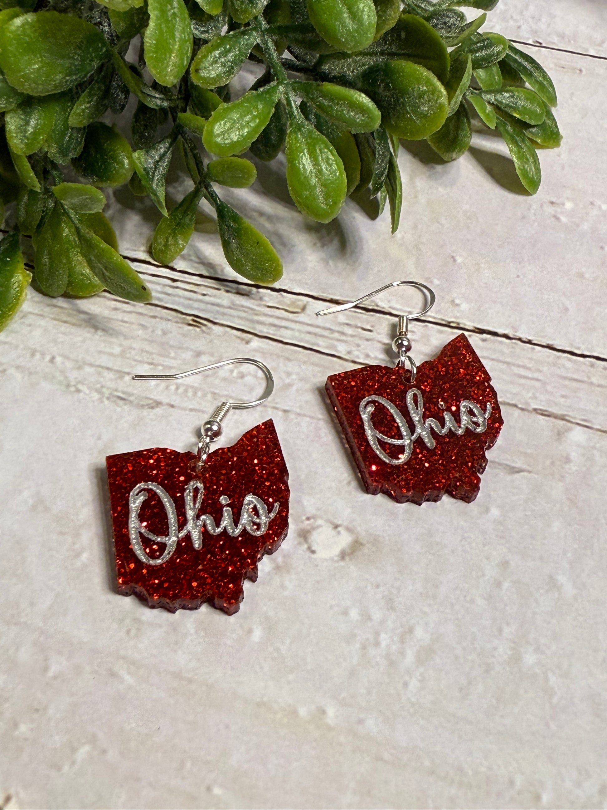 Red Glitter Ohio Dangle