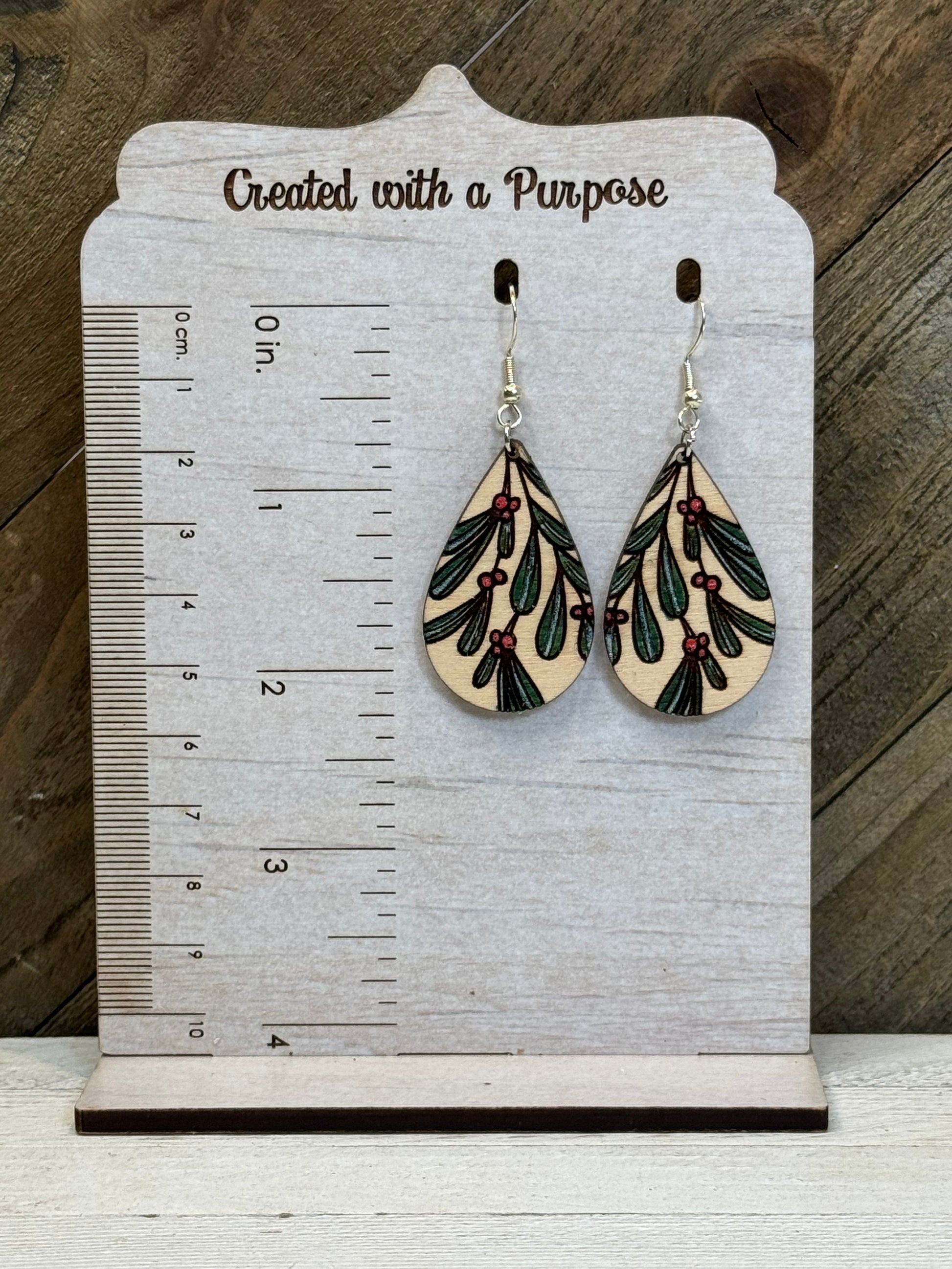 Wooden Mistletoe Earrings